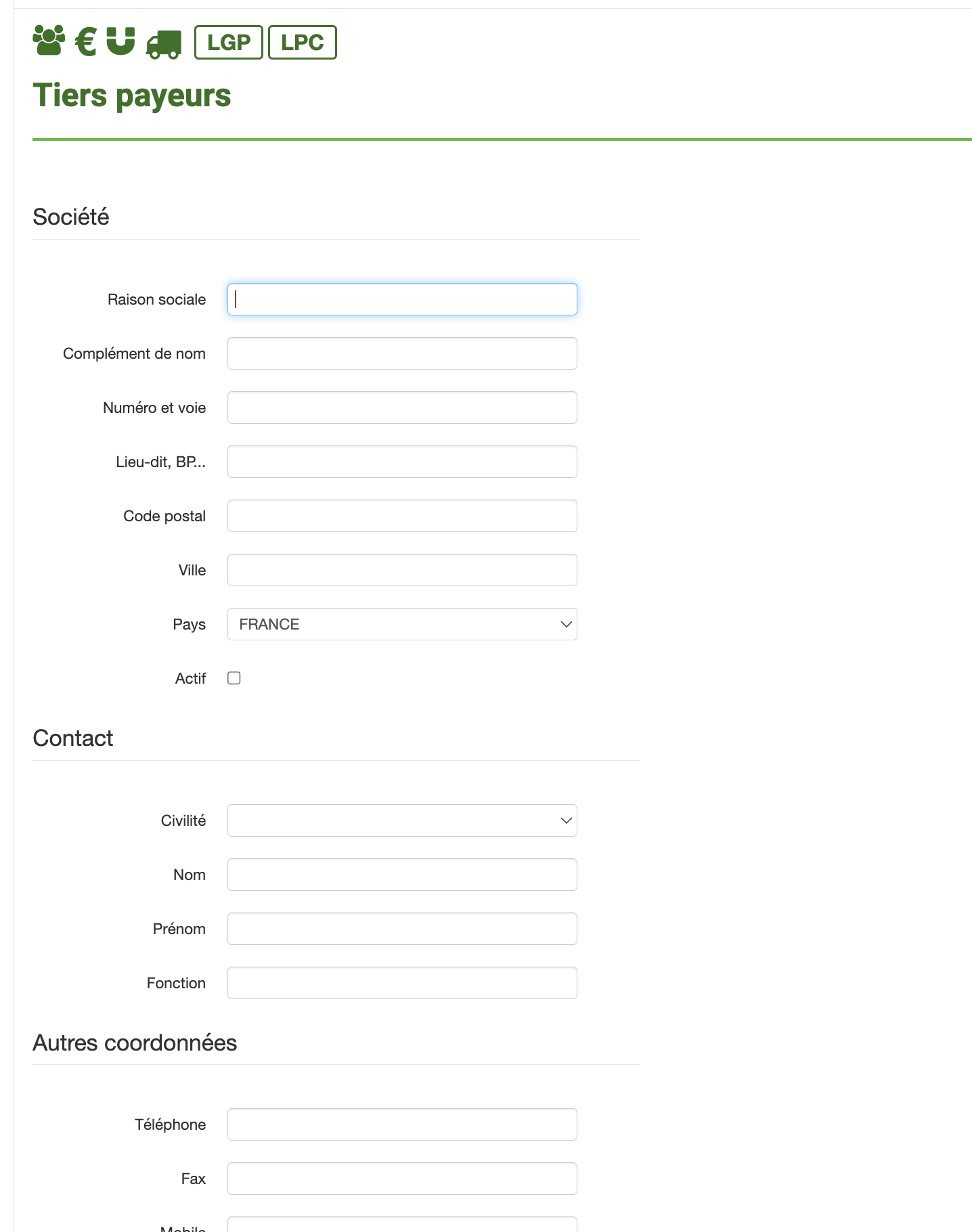 Cela se passe dans le menu Configuration > Tiers payeurs.